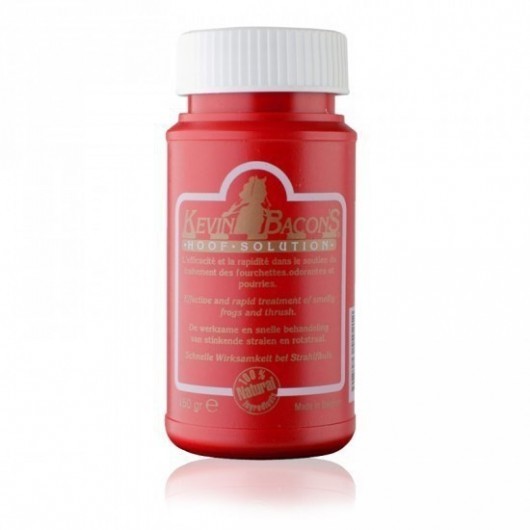 Brush out the sole, clefts, and frog meticulously (without using water!) and remove all dirt and necrotic tissue. Shake the bottle a few seconds before applying in order to resuspend the active ingredients in the solution.